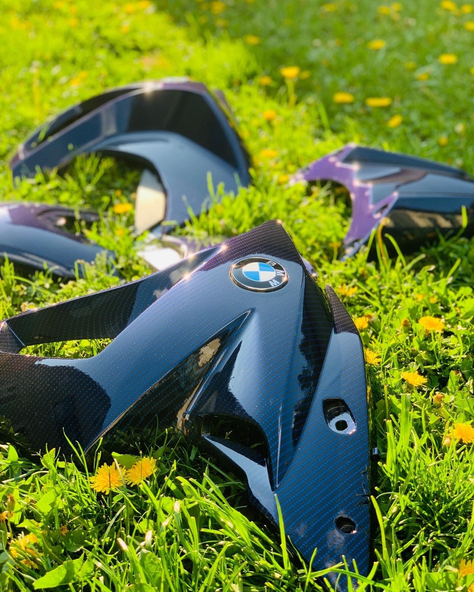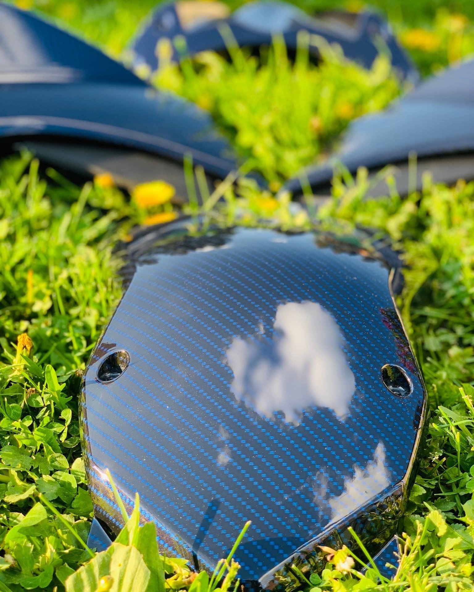 Povrchová úprava kapotáže motorky z jednofarebnej do modrého karbonu v lesku